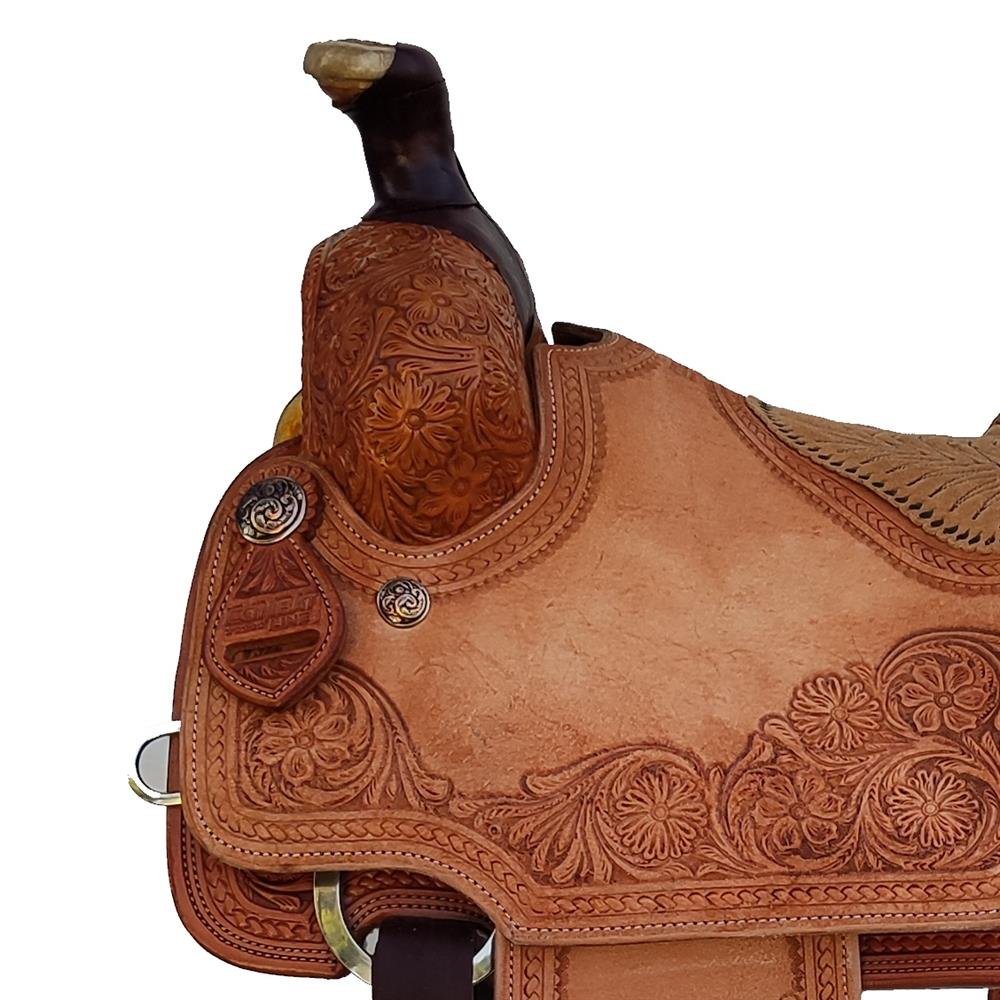 Sela profissional CombatLine Laço Diamante SCLD002 toda feita em couro legítimo com peiteira e barrigueira traseira. Tamanhos de 13,5″ a 18″.